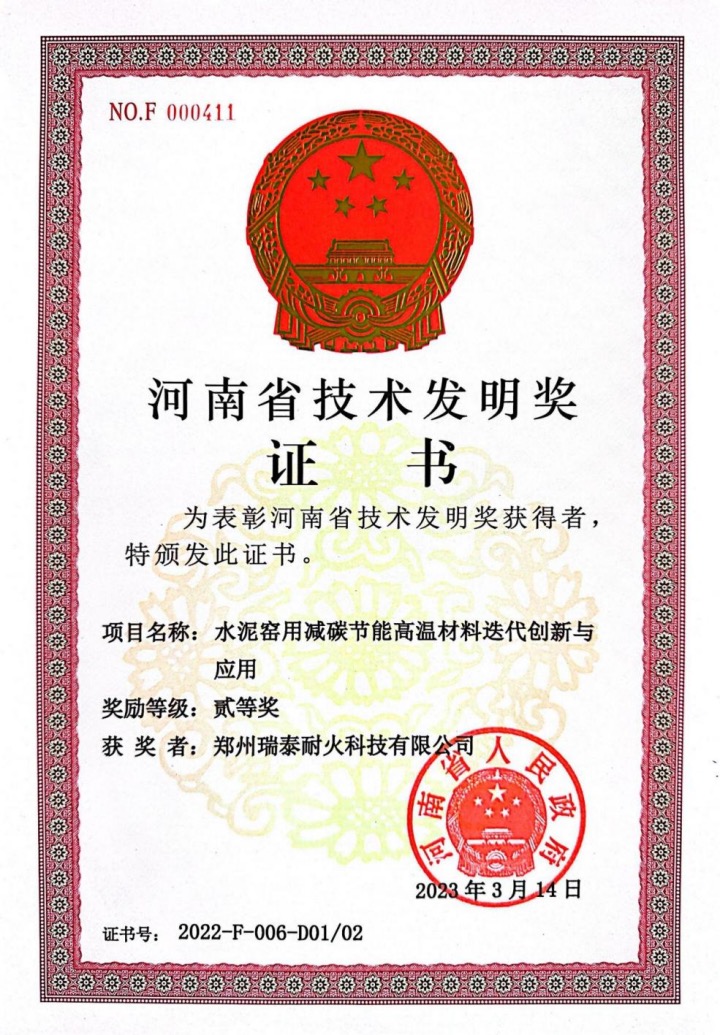 近日,河南省科技廳發(fā)布了科學技術獎評審結果,鄭州瑞泰耐火科技有限公司“水泥窯用減碳節(jié)能高溫材料迭代創(chuàng)新與應用”項目榮獲“河南省技術發(fā)明二等獎”。